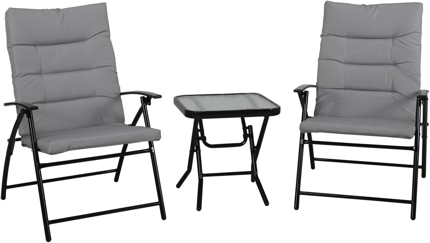 SVITA Balkonset VENTURA(3-teilig, 2 Stühle, 1 Tisch), gepolstert, Klappstühle, Klapptisch, Camping-Möbel, Metall, Dunkelgrau
