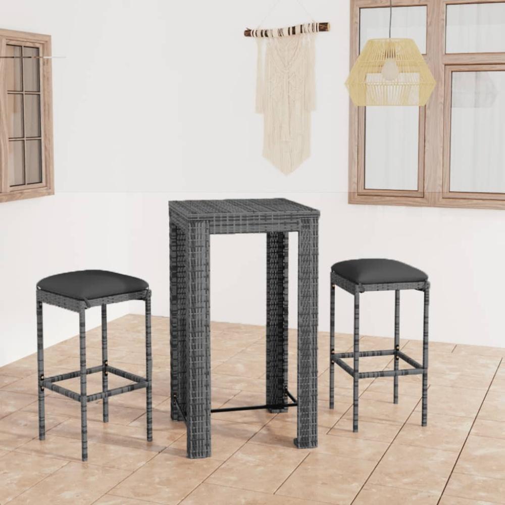vidaXL 3-tlg. Gartenbar-Set mit Kissen Poly Rattan Grau 3064776