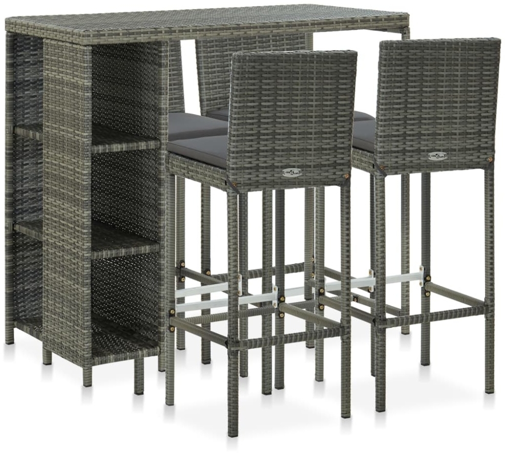 | Name | vidaXL 5-tlg. Gartenbar-Set mit Kissen Poly Rattan Grau 3064919 |