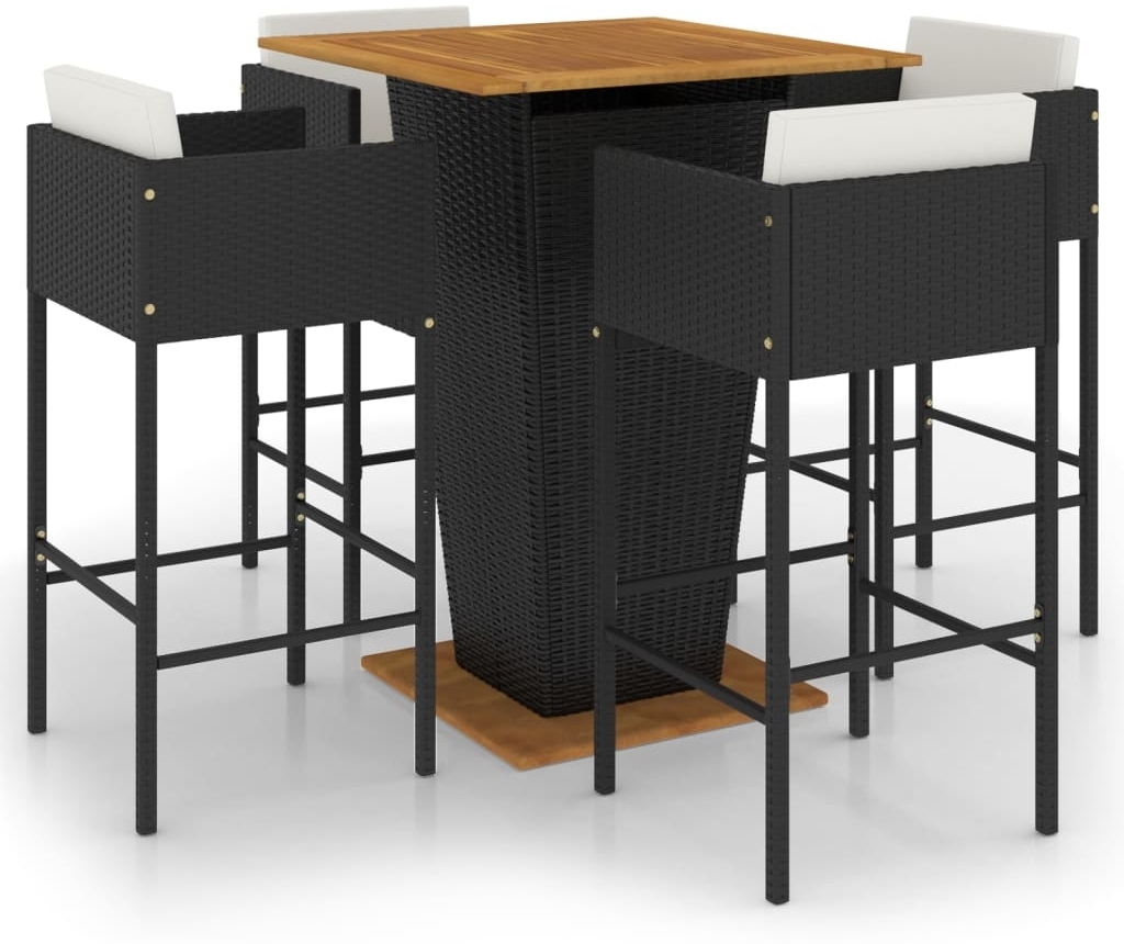 | Name | vidaXL 5-tlg. Gartenbar-Set mit Kissen Poly Rattan Schwarz 3094804 |