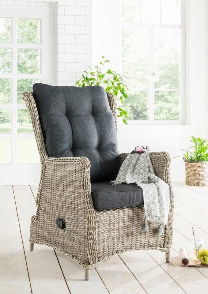 Der Destiny CASA Relaxsessel in Vintage Weiß bietet mit seiner stufenlos verstellbaren Rückenlehne und dem anthrazitfarbenen Polster höchsten Komfort. Das wetterfeste Aluminiumgestell ist mit hochwertigem Polyrattangeflecht umspannt und sorgt für Langlebigkeit. Die großzügige Sitzfläche von ca. 54 cm in der Breite und 61 cm in der Tiefe lädt zum Entspannen ein. **Highlights** - Verstellbare Rückenlehne mit stufenloser Hydraulik für individuellen Komfort - Hochwertiges Polyrattangeflecht in Vintage Weiß - Wetterfestes Aluminiumgestell für Langlebigkeit - Waschbare Polsterbezüge aus pflegeleichtem Polyester - Passend zu den Serien "LUNA", "PALMA" und "CASA" **Produkteigenschaften** - Gesamthöhe: ca. 103 cm - Höhe Armlehne: ca. 67 cm - Höhe Sitzfläche: ca. 39 cm - Breite gesamt: ca. 63 cm - Tiefe Sitzfläche / ohne Polster: ca. 61 cm - Tiefe Sitzfläche / mit Polster: ca. 51 cm - Material: Polyrattan 6 mm Rundgeflecht mit Aluminiumgestell - Farbe: Vintage Weiß - Inkl. Auflagen mit Reißverschluss aus Polyester in Anthrazit - Vollmontierter Aufbau **Lieferumfang** - 1x Hochlehner Sessel mit Polster für Sitz- und Rücken (ohne Deko und weitere Möbel) - Für den Versand der Ware wird eine ganztägig erreichbare Telefonnummer benötigt.