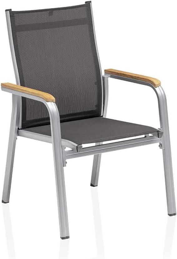 - Der Kettler Granada Stapelsessel besticht durch ein elegantes Design mit einem stabilen Gestell aus silberfarbenem Aluminium und FSC-zertifizierten Teakholz-Armlehnen