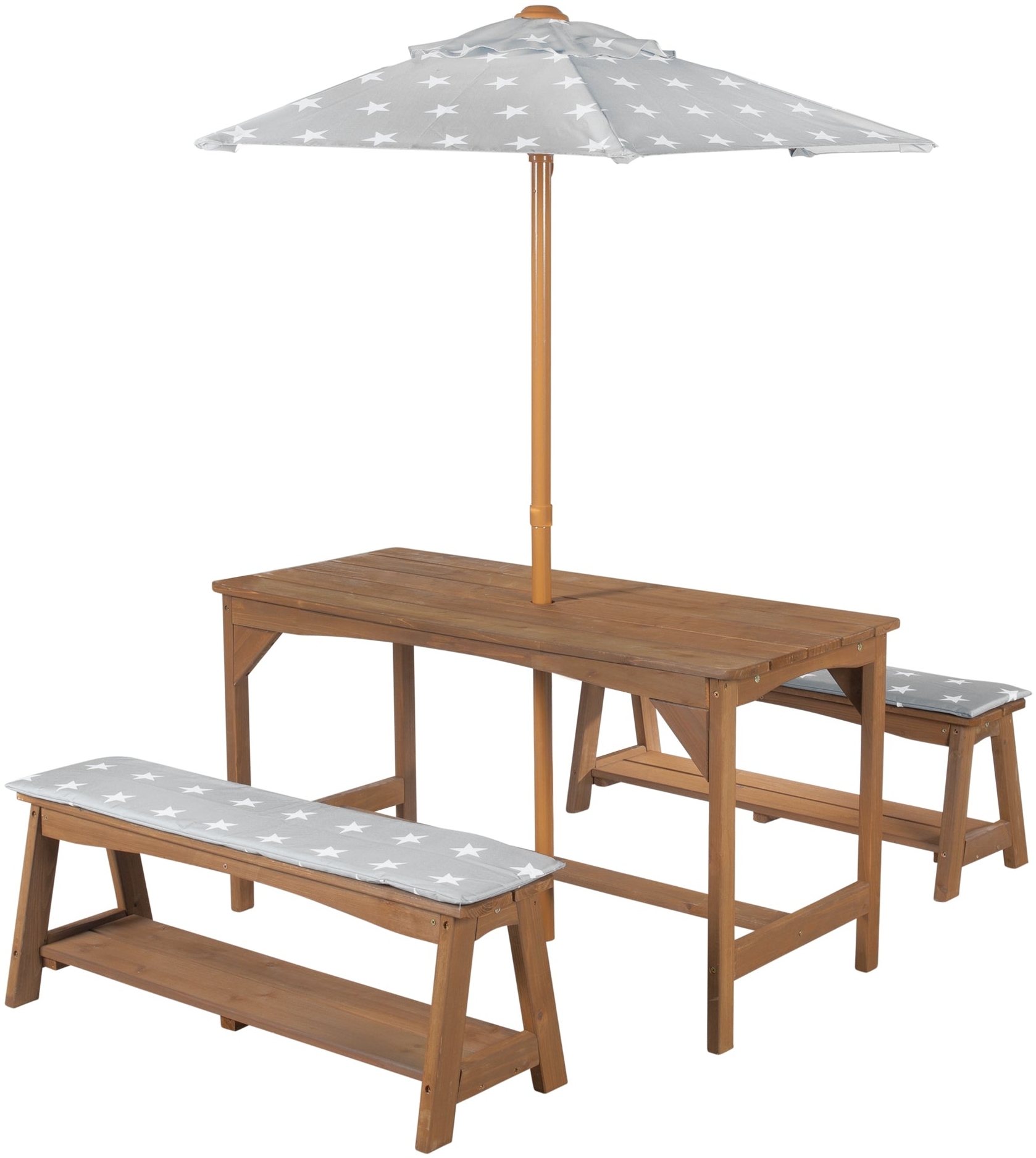 in Gartenspielzeuge: Spielsitzgruppen für draußenroba Kindersitzgruppe 'Outdoor+' - 'Little Stars' Sonnenschirm & Sitzauflagen - Massivholz - Teak