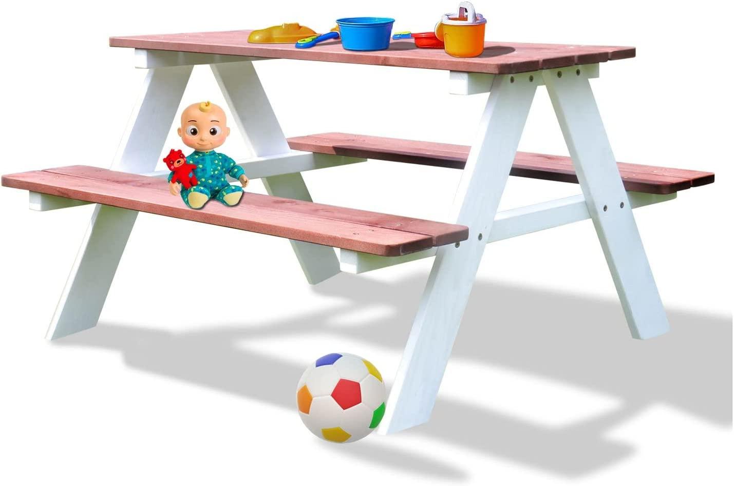 Coemo Picknicktisch Holz Kinder Sitzgruppe Gartentisch Sitzgarnitur Weiß/Teakoptik