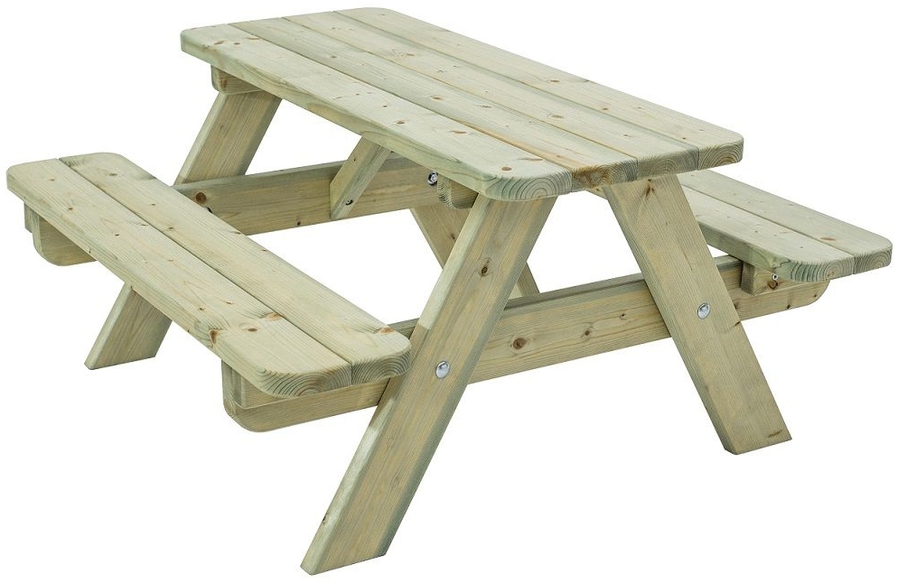 | Beschreibung | Kinder lieben es sich im Garten auszutoben und zu spielen. Das Ausruhen, Essen und Trinken darf dabei natürlich nicht zu kurz kommen. Unsere praktische Sitzgruppe aus Holz bietet Platz für bis zu vier Kinder. Das Gartenmöbel-Set ist ideal für ein Picknick oder auch um mit Freunden und Geschwistern zu spielen oder zu malen. Die robuste Sitzgarnitur ist aus hochwertigem Holz hergestellt und die abgerundeten Ecken am Tisch und an den Bänken schützen vor Verletzungen. Produktdetails: - Material: Holz Kiefer/Fichte, - FSC-zertifiziert - Farbe: grün imprägniert - Abmessungen: 90 x 90 x 45 cm (L x B x H) - max. Belastung Bank: 100 kg - max. Belastung Tisch: 100 kg - Brettstärke: 28 mm - Gewicht: ca. 17 kg Produktinformationen: - kompakte Sitzgruppe für bis zu 4 Kinder - Sitzhöhe: ca. 29 cm - Abmessung Bank: 90x18 cm (L x B) - Abmessung Tisch: 90x36 cm (L x B) - ideal für den Garten - massive Ausführung - Bänke fest am Tisch integriert - kippsichere Konstruktion - empfohlen ab 2 Jahren |
