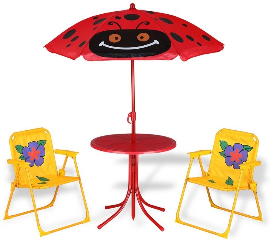 | Lieferumfang | Kindersitzgruppe mit zwei Klappstühlen, Tisch und Sonnenschirm. |