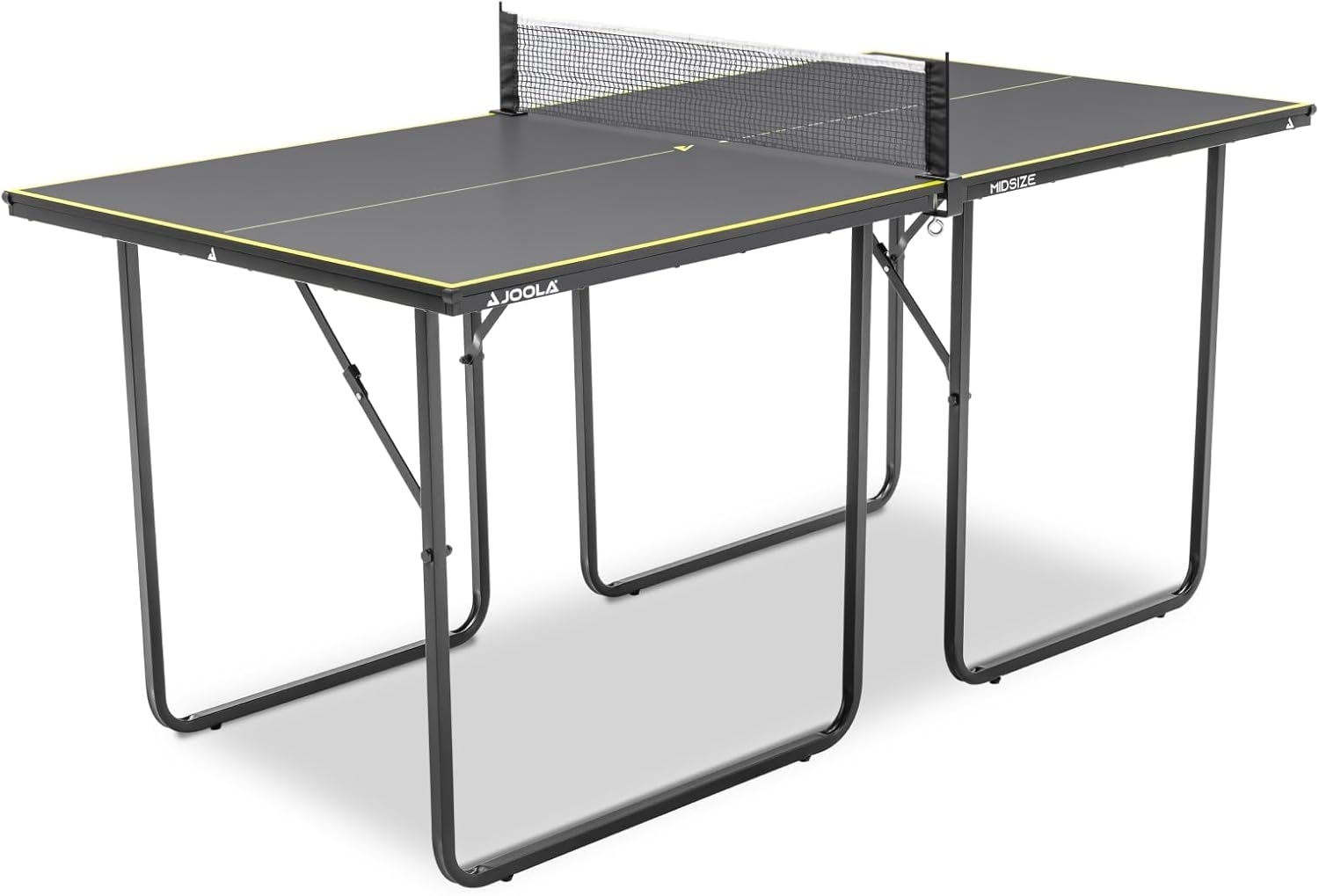 #### Erleben Sie vollen Spielspaß auf kleinem Raum - mit der Joola "Midsize" Indoor-Tischtennisplatte! Die Joola "Midsize" Indoor-Tischtennisplatte ist die perfekte Tischtennisplatte für den Innenbereich. Mit ihren großzügigen Maßen von 168 x 84 x 76 cm (L x B x H) bietet sie ein Spielerlebnis, das dem einer herkömmlichen Tischtennisplatte in nichts nachsteht. Gleichzeitig nimmt sie jedoch deutlich weniger Platz ein als eine Fullsize-Tischtennisplatte und passt somit optimal in fast jeden Wohnraum. Egal, ob Sie Anfänger oder erfahrener Spieler sind, diese Tischtennisplatte wird Ihre Erwartungen übertreffen. #### Einzigartige Kombination aus Stabilität und Flexibilität Die Joola "Midsize" Tischtennisplatte zeichnet sich durch ihre herausragende Konstruktion aus. Die 15 mm dicke Pressspanplatte sorgt für eine erstklassige Ballkontrolle und ein authentisches Spielgefühl. Das pulverbeschichtete Metallgestell garantiert Stabilität und Langlebigkeit, während die Möglichkeit, die Platte in zwei Hälften zu trennen und die Beine pro Hälfte einzuklappen, eine einfache Lagerung und Transportierbarkeit ermöglicht. Die dunkelgraue Oberfläche mit gelben Akzenten verleiht der Platte zudem eine ansprechende Optik. #### Spielspaß jederzeit und überall Mit der mitgelieferten Netzgarnitur sind Sie sofort startklar für packende Matches. Diese Joola "Midsize" Tischtennisplatte ermöglicht es Ihnen, Ihr Können zu perfektionieren und auf engem Raum spannende Spiele auszutragen. Ob im Keller, im Wohnzimmer oder der Garage - genießen Sie Tischtennis ohne Kompromisse.