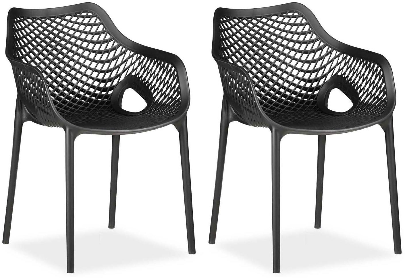 Gartenstuhl mit Armlehnen 2er Set Gartensessel Schwarz Stühle Kunststoff Stapelstühle Balkonstuhl Outdoor-Stuhl