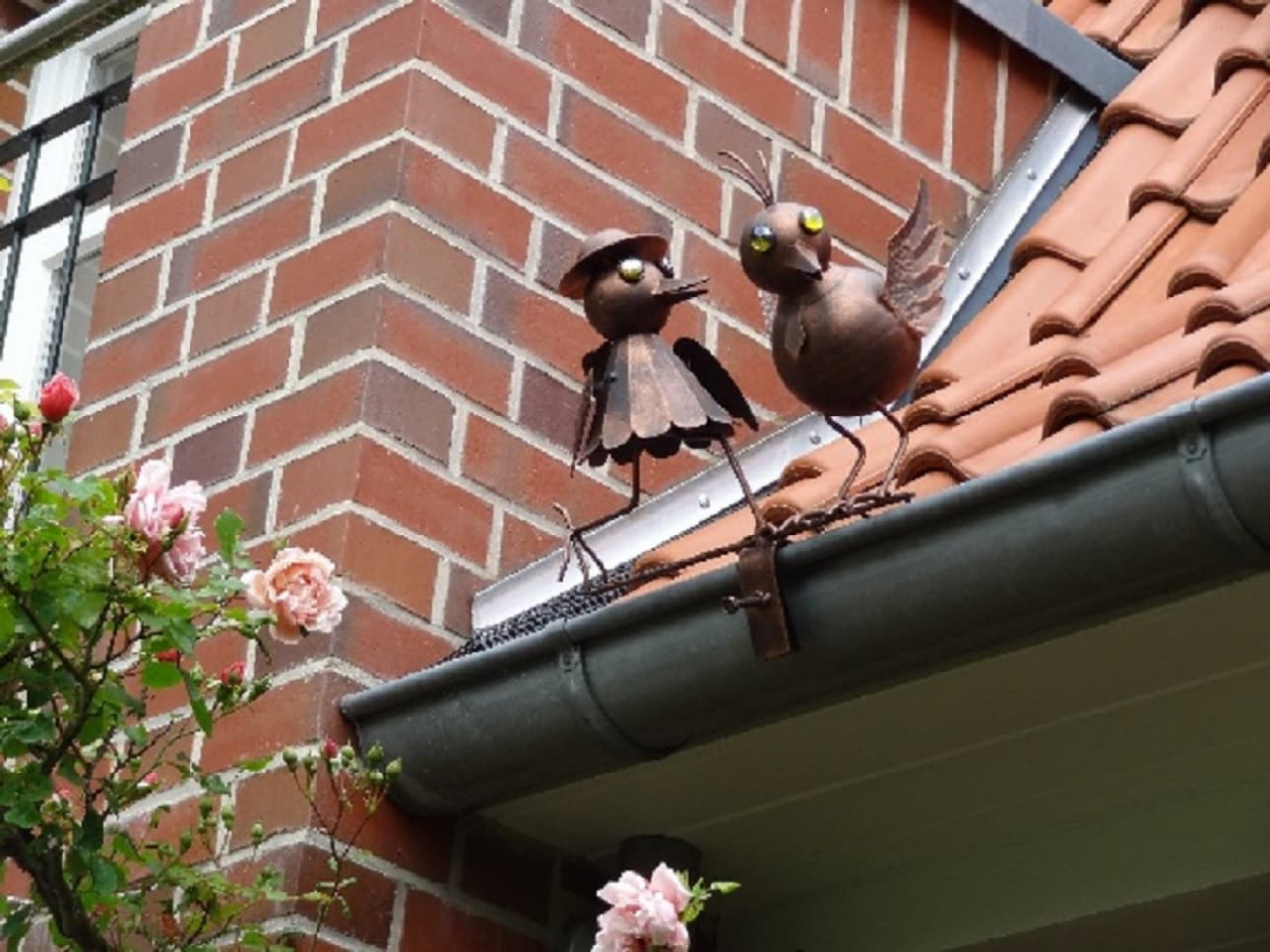 - Das lustige Vogelpaar ist ideal zum Dekorieren von Dachrinnen oder Zaungeländern.