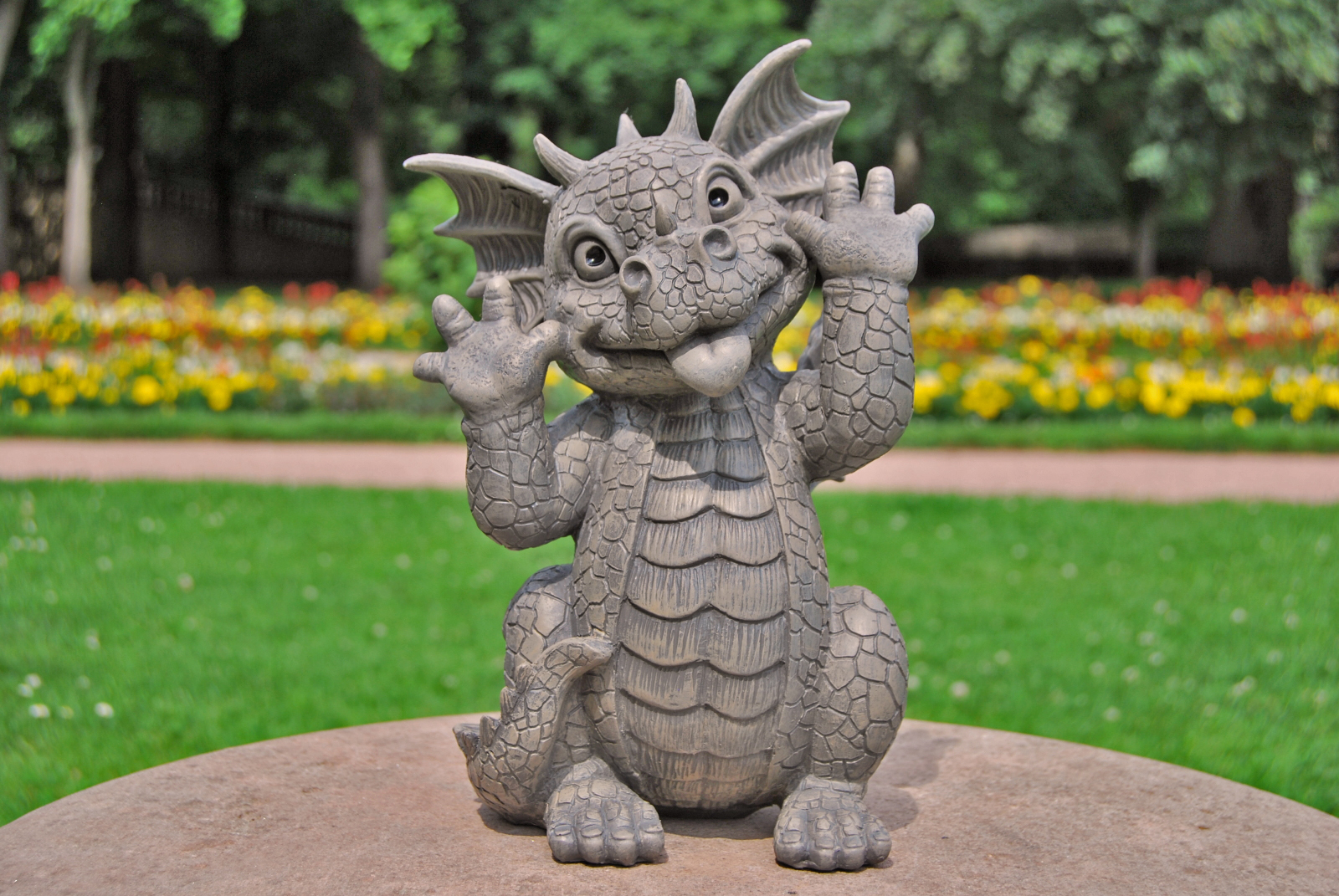 - Dieses süße Drachenbaby besteht aus Polyresin und ist ein einzigartiger Hingucker in jedem Garten.