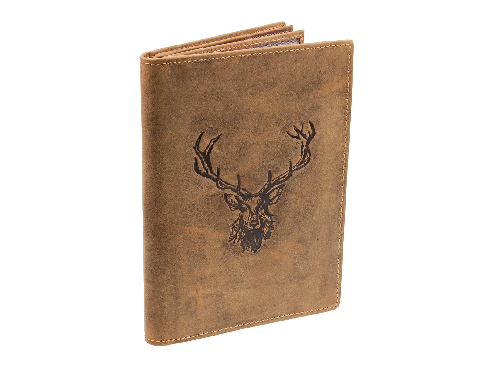 Vintage Leder Ausweismappe Hirsch Prägung Jagdschein Ausweisetui Braun