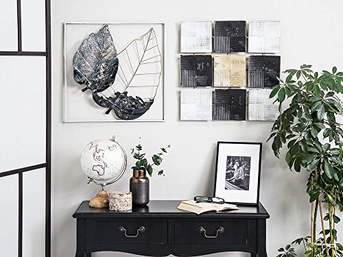 Wanddekoration schwarz-grau-gold aus Metall Blätter Kombination 50 x 50 cm Quadratisch Modern