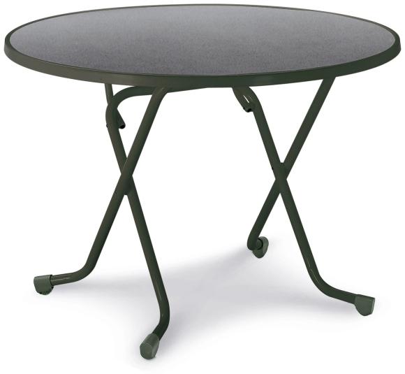 Der Scherenklapptisch Primo ist ein praktischer und robuster Gartentisch mit einem Durchmesser von 100 cm und einer Höhe von 70 cm. Das Stahlrohrgestell sorgt für Stabilität, während die wetterfeste und UV-beständige Tischplatte kratzfest und hitzebeständig ist. Der Tisch lässt sich mit einem einfachen Klappmechanismus platzsparend verstauen und ist ideal für den Einsatz im Freien. **Highlights** - Robustes Stahlrohrgestell für hohe Stabilität - Wetterfeste und UV-beständige Tischplatte - Kratzfest und hitzebeständig - Praktischer Scheren-Klappmechanismus - Platzsparend zusammenklappbar **Produkteigenschaften** - Maße: rund 100 cm Ø - Tischhöhe: 70 cm - Mit farblich angepasstem Schutz-/Kunststoffumleimer an der Tischplatte