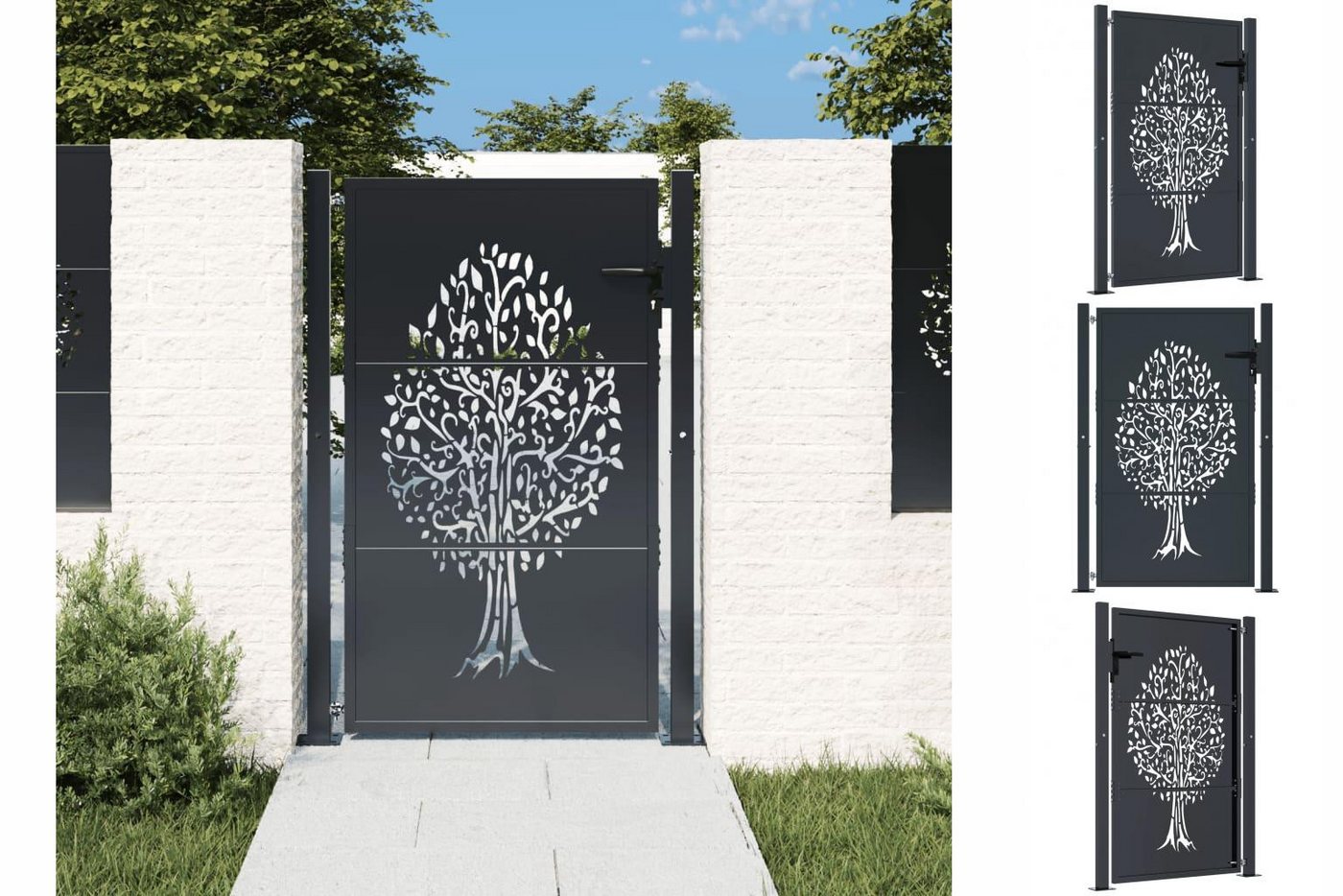 vidaXL Gartentor Anthrazit 105x130 cm Stahl Baum-Design Abschließbar Schlüsse