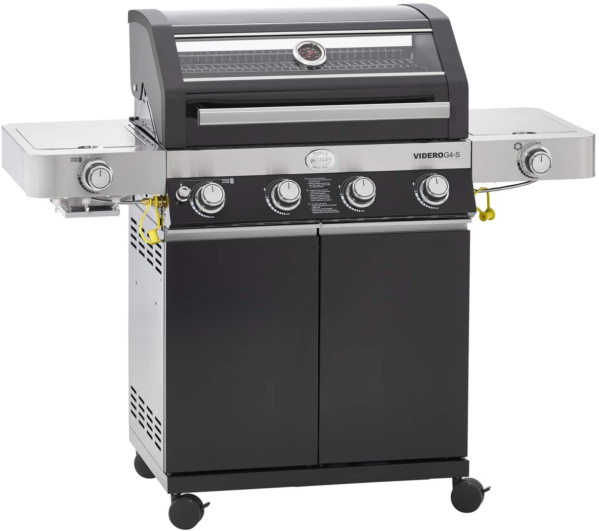 RÖSLE Gasgrill BBQ-Station VIDERO G4-S Vario+ Nero SchwarzGrill mit 4 Edelstahlbrennern, extra Primezone und Seitenbrenner, klappbare Seitentische, VARIO+, pulverbeschichteter Stahl, Version 2021