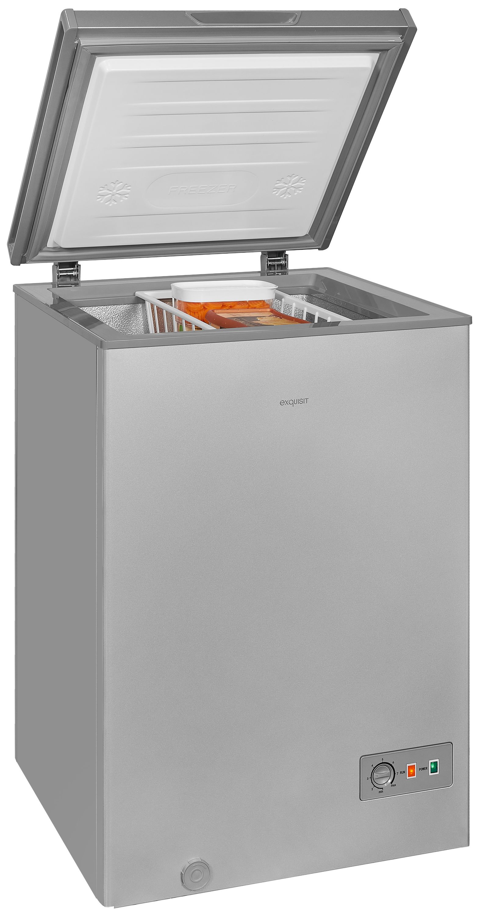 Exquisit GT100-330E Gefriertruhefreistehend, silber, Breite 54.6 cm, Energieklasse E