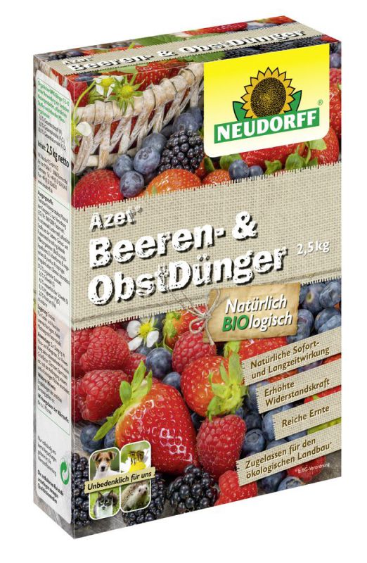 - Der NEUDORFF Azet BeerenDünger ist ein organischer Dünger, der speziell für Erdbeeren, Stachel- und Johannisbeeren sowie andere Obststräucher und -bäume entwickelt wurde.
