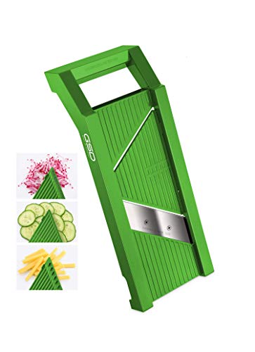 - Der GSD Universal-Gemüsehobel „3-in-1“ bietet drei auswechselbare Einsätze für unterschiedliche Scheibenstärken von 1 mm, 2 mm und 3 mm.