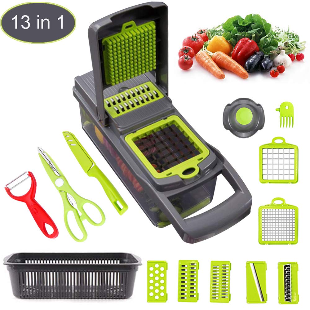 in Gemüsehobel & ReibenGemüseschneiderMandolinenschneider, professioneller Zwiebelschneider, Multifunktions-Klinge, Band-Behälter, geeignet für Knoblauch, Kohl, Gurken, Kartoffeln, Tomaten, Obst, Gemüse