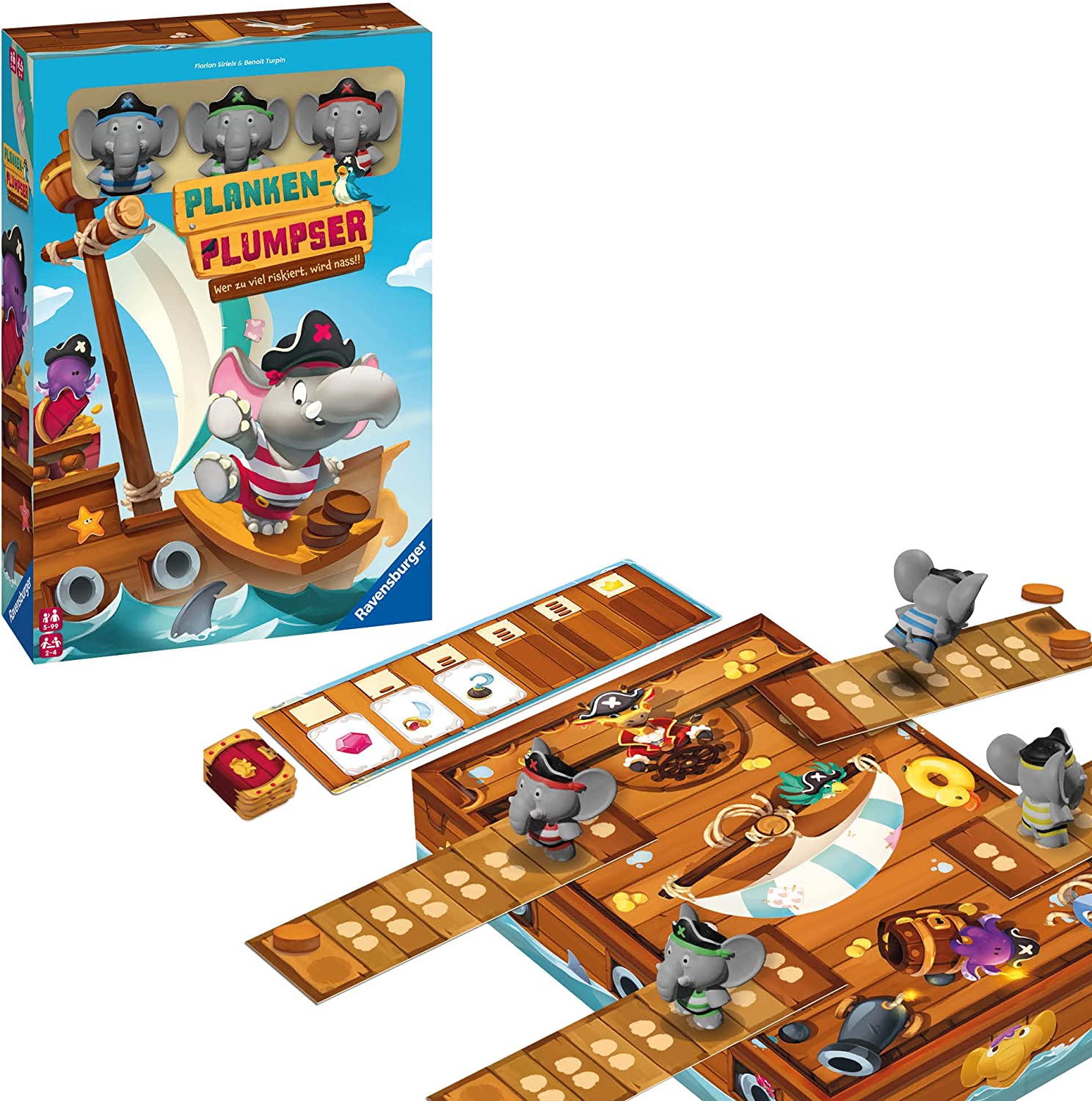 | Beschreibung | Ravensburger Kinderspiel 22342 - Planken-Plumpser - Wer zu viel riskiert, wird nass!! - Ein Push-Your-Luck Spiel für 2-4 Kinder ab 5 Jahren |