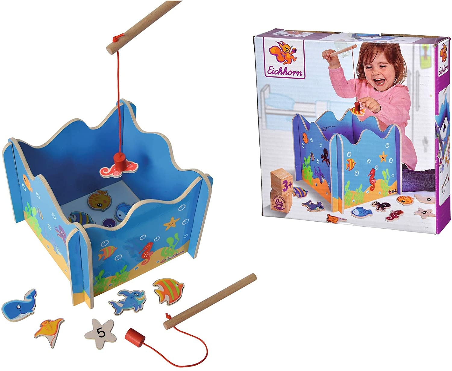 - Das Eichhorn Angelspiel enthält zwei Angeln und 16 bunte Fische, die für ein unterhaltsames Spielerlebnis sorgen.