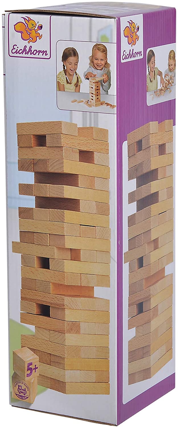 | Name | Eichhorn Stapelspiel, Geschicklichkeitsspiel für die ganze Familie, Balance Tower gefertigt aus unbehandelten Holz, Wackelturm 54 teilig, geeignet ab 5 Jahren |