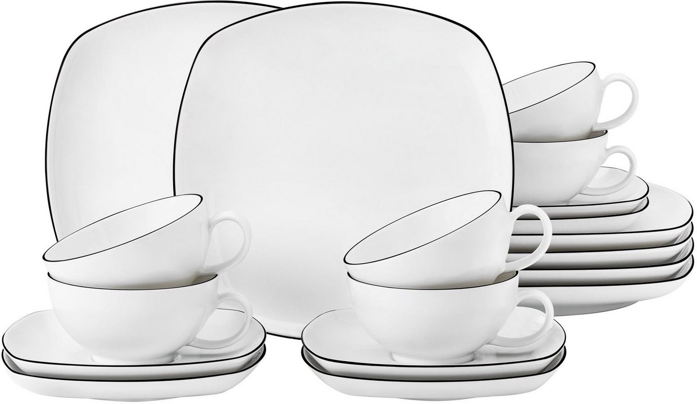 Seltmann Weiden Lido Black Line Teeservice 18-teilig eckig