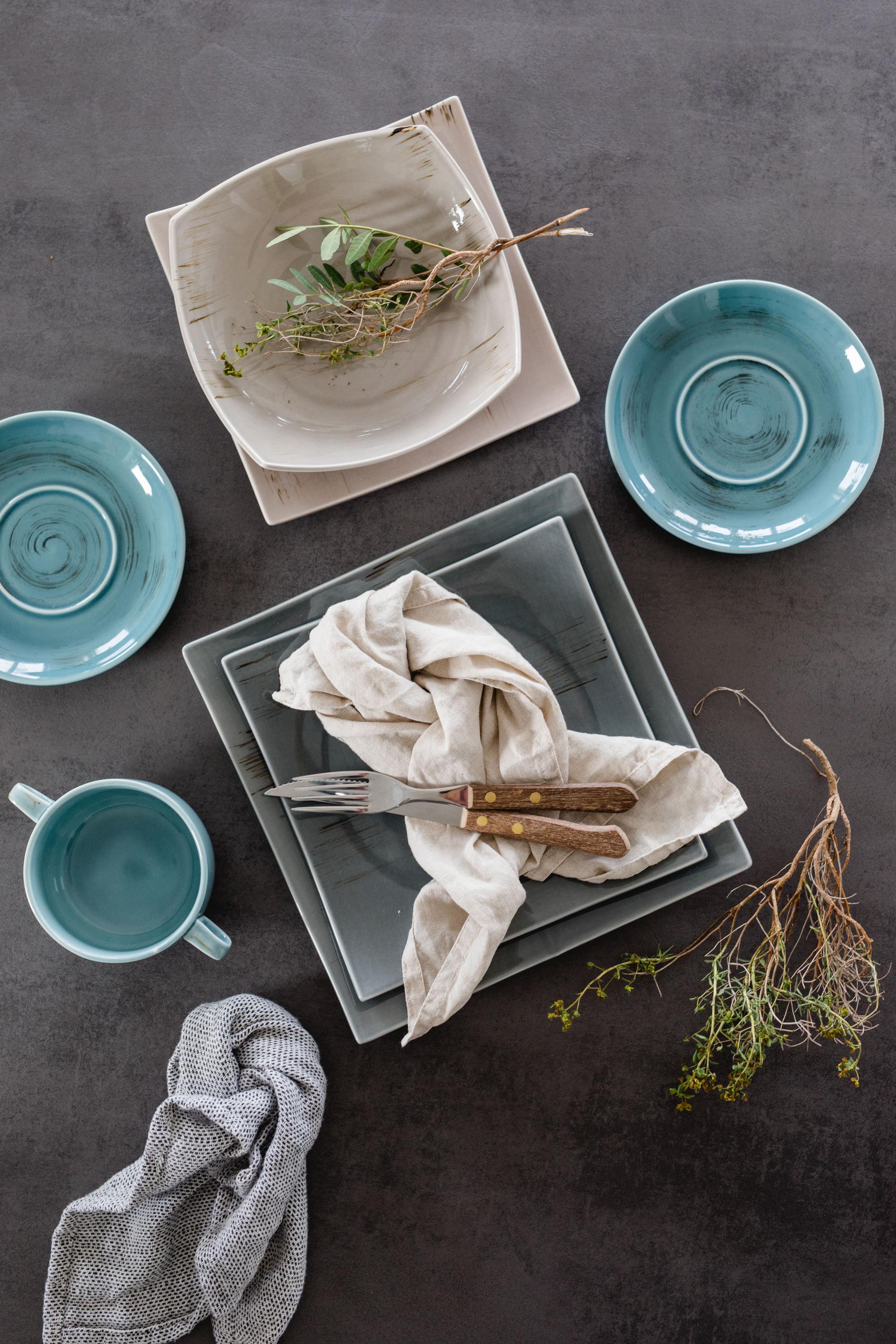 Das Mäser 931453 Derby Suppentassen Set für 4 Personen umfasst 4 Suppenschüsseln und 4 Untertassen aus hochwertigem Durable Porzellan. In den trendigen Farben Blau, Beige, Dunkelgrau und Weiß überzeugt das Set durch einen auffälligen, von Hand aufgetragenen Pinseleffekt, der jedes Stück zu einem Unikat macht. Es ist spülmaschinenfest, mikrowellengeeignet sowie stoß-, schlag- und bruchfest, was es besonders langlebig und pflegeleicht macht. **Highlights** - Premium-Qualität für gehobene Gastronomie - Trendige Farben in bunten Pastelltönen - Auffälliger Pinseleffekt für einzigartiges Design - Spülmaschinenfest und mikrowellengeeignet - Stoß-, schlag- und bruchfest **Produkteigenschaften** - Material: Durable Porzellan - Farben: Blau, Beige, Dunkelgrau, Weiß - 8-teiliges Set für 4 Personen - Suppenschüsseln und Untertassen - Pinseleffekt von Hand aufgetragen **Lieferumfang** - 4 Suppenschüsseln - 4 Untertassen
