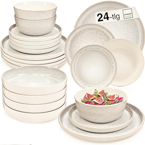 in Geschirr: Geschirr SetsSänger Geschirrset Key WestTafelservice (24 Stück), creme mit sandiger Maserung, kratzfest und erweiterbar