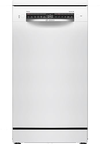 - Der Bosch Serie 4 Geschirrspüler ist ein freistehendes Modell in der Farbe Weiß