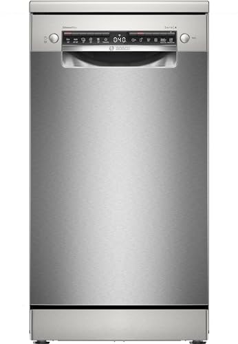 - Der Bosch Serie 4 Geschirrspüler ist ein freistehendes Gerät mit einer Breite von 45 cm und einer edlen Silver Inox Optik