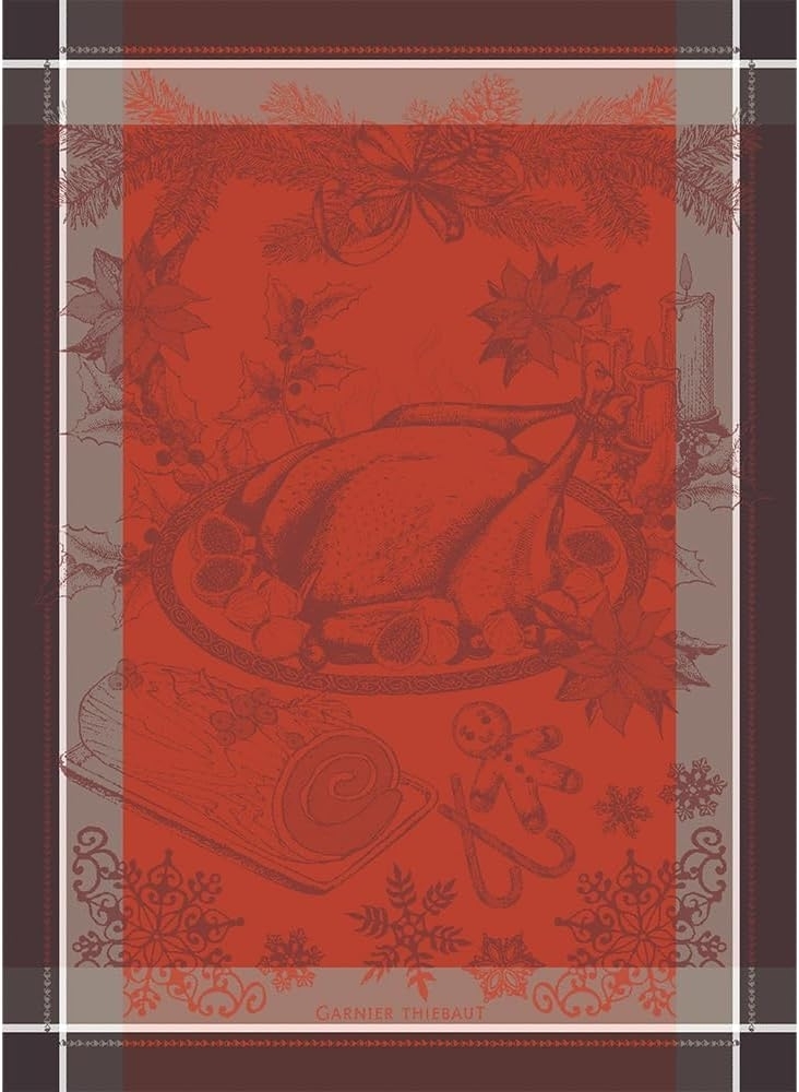 Garnier-Thiebaut Geschirrtuch Dinde De Noel Vermillon 56x77 cm 100% Baumwolle