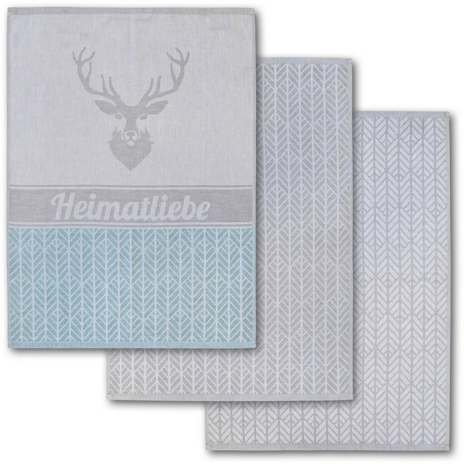 Dyckhoff Geschirrtuch Heimatmit 3 verschiedenen Motiven, Heimatliebe, (Set, 3-tlg), aus 100% Baumwolle, Maße je Tuch ca. 50x70 cm, mit Hirschmotiv