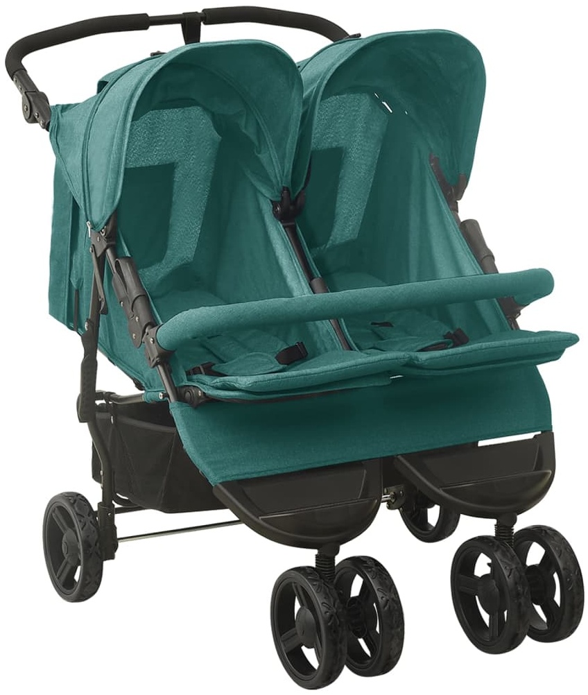 Mit diesem praktischen Zwillingswagen können Sie Ihre Kinder zum Spaziergang im Park, zum Einkaufen usw. mitnehmen. Der Kinderwagen für 2 Kinder verfügt über einen Stahlrahmen, der ihn robust und langlebig macht. Die Rückenlehne und die Fußstütze sind in mehreren Positionen verstellbar und bieten so hohen Komfort. Das runde Verdeck schützt Ihre Kinder vor direkter Sonneneinstrahlung. Darüber hinaus bietet die vordere Stoßstange optimale Sicherheit und verhindert das Herausfallen. Der mitgelieferte praktische Korb eignet sich ideal zur Aufbewahrung von Babyartikeln. Dieser Zwillingsbuggy lässt sich auch zusammenklappen, um eine einfache Lagerung und Transport zu gewährleisten. Farbe: Grün Material: Stahl, Leinenstoff Abmessungen (aufgeklappt): 99 x 78 x 103 cm (B x T x H)Abmessungen (zusammengeklappt): 80 x 79 x 45 cm (B x T x H)Zusammenklappbar Verstellbarer Lenker Mit rundem Verdeck Mit Frontstoßstange Rückenlehne in mehrere Positionen verstellbar Verstellbare Fußstütze Mit Korb Max Belastbarkeit: 15 kg Zusammenbau erforderlich: Ja