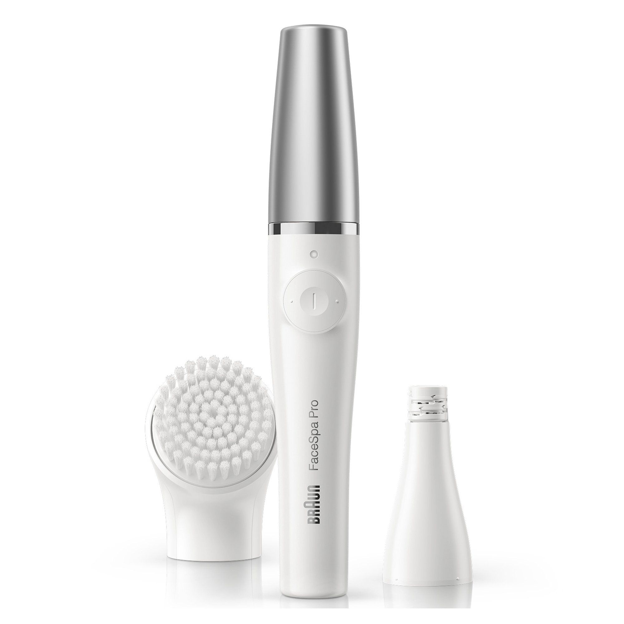 Braun FaceSpa Pro 910 Geischtsreinigungs- und Epiliergerät für Gesichtshärchenmit silberner Kappe, weiß-silber