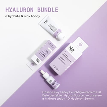 - Das Nø hydrate today Hyperdration 4D Hyaluron Serum enthält Hyaluronsäure und Ectoin, die die Haut auf mehreren Ebenen mit Feuchtigkeit versorgen.