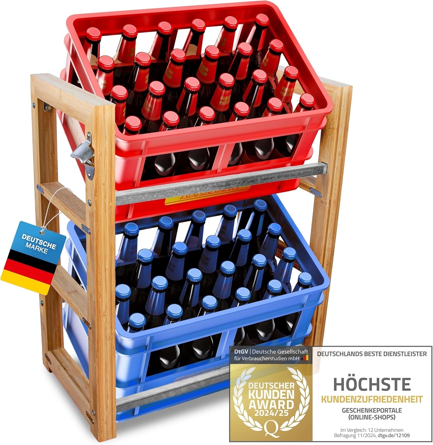 - Das DIMONO Getränkekistenregal ist in drei Größen erhältlich, sodass es für 2, 3 oder 6 Getränkekisten genutzt werden kann.