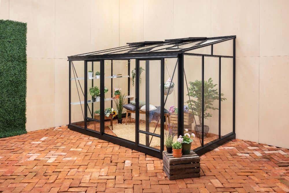 Terrando Anlehngewächshaus Elena Gewächshaus aus Metall in Schwarz Anzuchthaus mit 4 mm Wandstärke Treibhaus