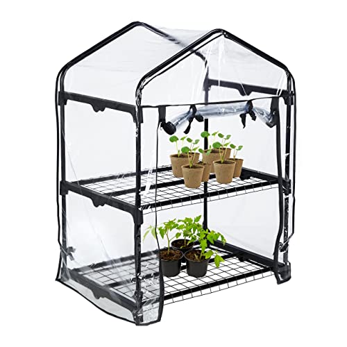 🔥 Deal in GewächshäuserRelaxdays Gewächshaus Balkon PVC-Folie, Stahl, HxBxT: 94 x 69 x 49 cm, Foliengewächshaus 2 Ebenen, schwarz/transparent