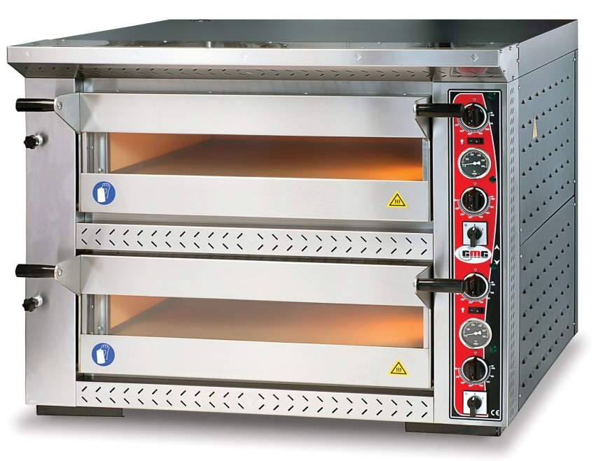 Pizzaofen elektrisch6+6x Ø33cm, 15kW, 400V Edelstahl 2 Backkammern Vollschamottstein
