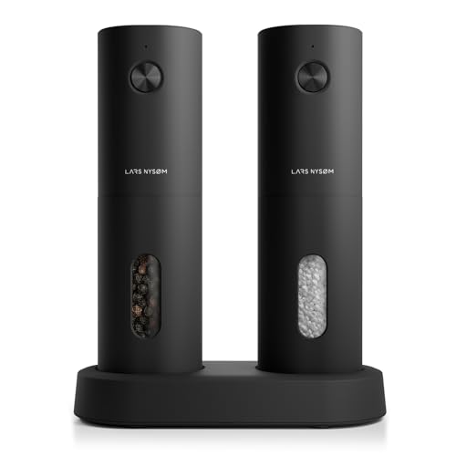 in GewürzmühlenLARS NYSØM Salz und Pfeffer Mühle Elektrisch 2er Set mit einstellbarem Keramik-Mahlwerk von grob bis fein I Design Gewürzmühlenset Automatisch (2 Stück, Onyx Black)
