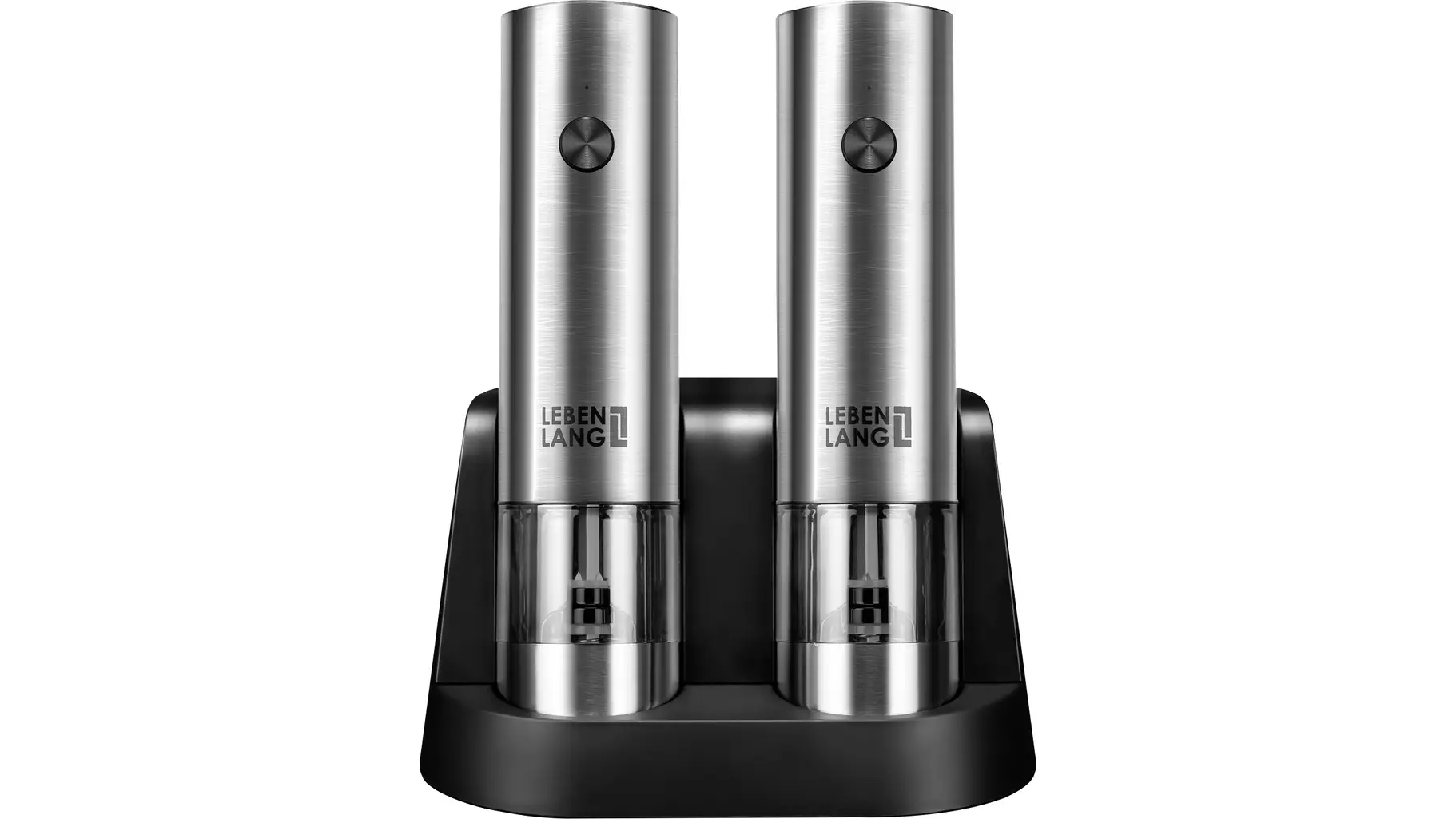 in GewürzmühlenLebenlang LBL9599 Pfeffermühle + Salzmühle, Keramikmahlwerk, LED-Leuchte, Silber-Schwarz