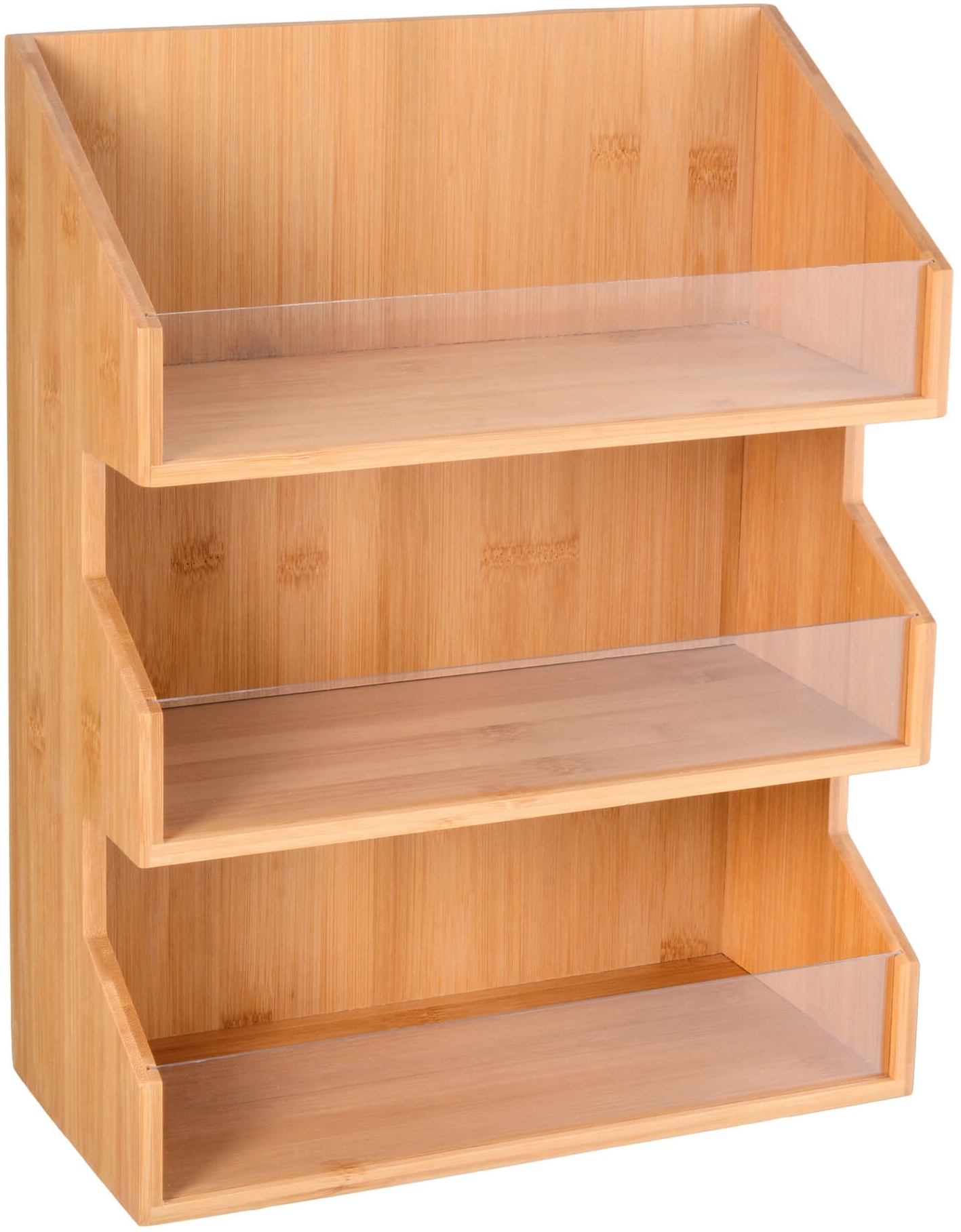 Multifunktionales und ästhetisches Küchenregal aus nachhaltigem Bambus für eine elegante und organisierte Küche. Drei großzügige Fächer bieten ausreichend Platz für Gewürze, Teebeutel und Bastelutensilien. Offenes Design ermöglicht einen einfachen Zugriff auf Ihre Utensilien, ohne das Regal öffnen zu müssen. Herausnehmbare Acrylglasscheibe schützt vor Staub und Feuchtigkeit und gewährleistet gleichzeitig eine klare Sicht auf den Inhalt. Die Anti-Rutsch-Noppen gewährleisten, dass das Küchenregal fest an seinem Platz bleibt und nicht versehentlich verrutscht, selbst bei aktivem Gebrauch und unebenen Oberflächen.