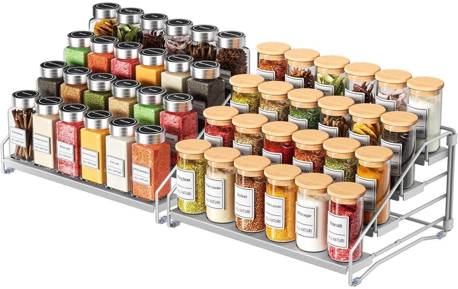 Gewürzregal 4 Etagen Stehend ohne Bohren Silber Grau Metall 34cm - 2er Pack
