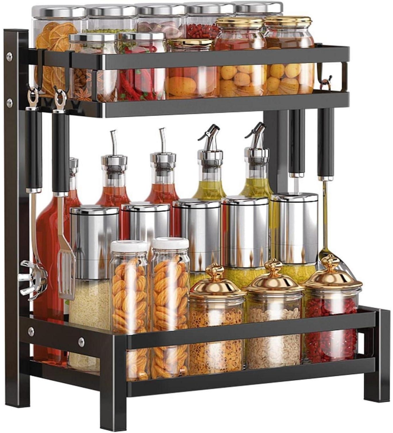 | Name | NETEL Gewürzregal 2 Etagen Stehend Küche Schwarz Utensilienhalter & Haken |