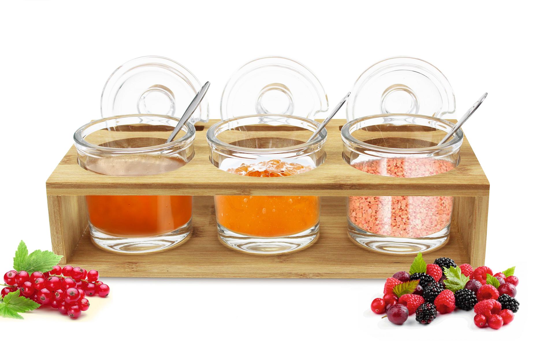 in GewürzstreuerSendez 3 Gewürzgläser mit Holzkiste und Löffeln Gewürzdosen Parmesandosen Marmeladendosen Set Honigdose Dose Zuckerdose Salzdose Vorratsdose