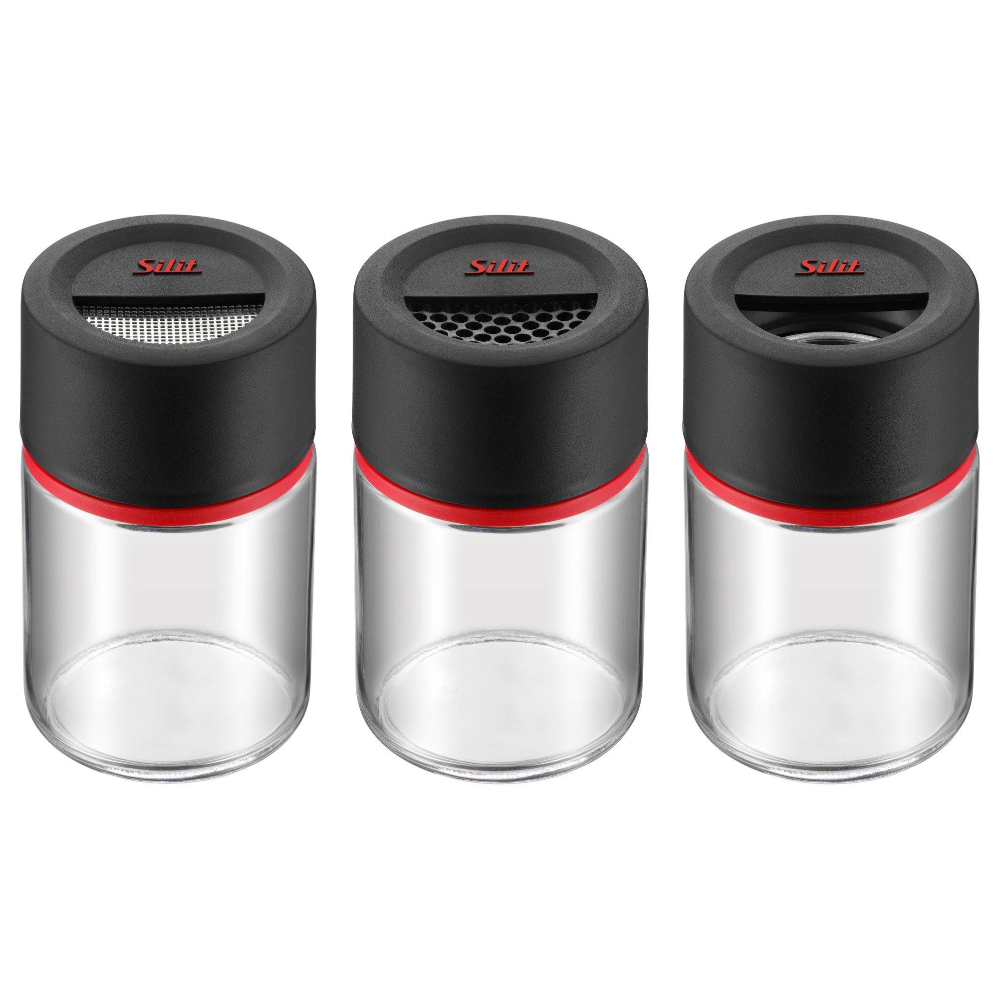 Silit Storio Gewürzstreuer-Set 3-teilig Feinstreuer Grobstreuer Gewürzglas GlasKunststoff, spülmaschinengeeignet