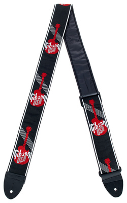 Gibson ASGG-600Gitarrengurt mit Logo für Gitarre und Bass, Gewebegurt, 5,08 cm breit, 116 cm - 135 cm, Schwarz/Weiß/Rot