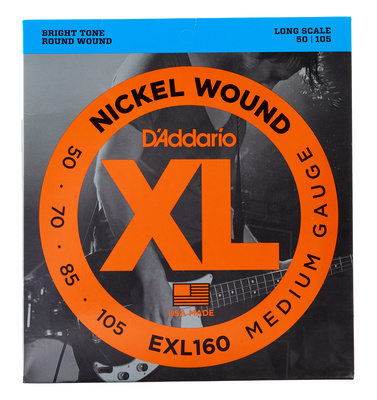 in GitarrensaitenDaddario EXL160Gitarrensaiten für E-Bass, Nickel Round Wound, Stärken 050-070-085-105 Regular/Long Scale, ausgewogener Klang
