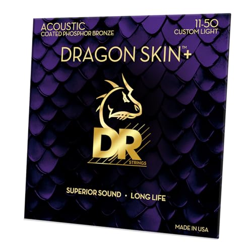 - DR Strings Dragon Skin+ DAP-11 Coated ist ein 6-saitiger Satz für Akustikgitarre, der mit einem speziellen beschichteten Phosphorbronzedraht ausgestattet ist